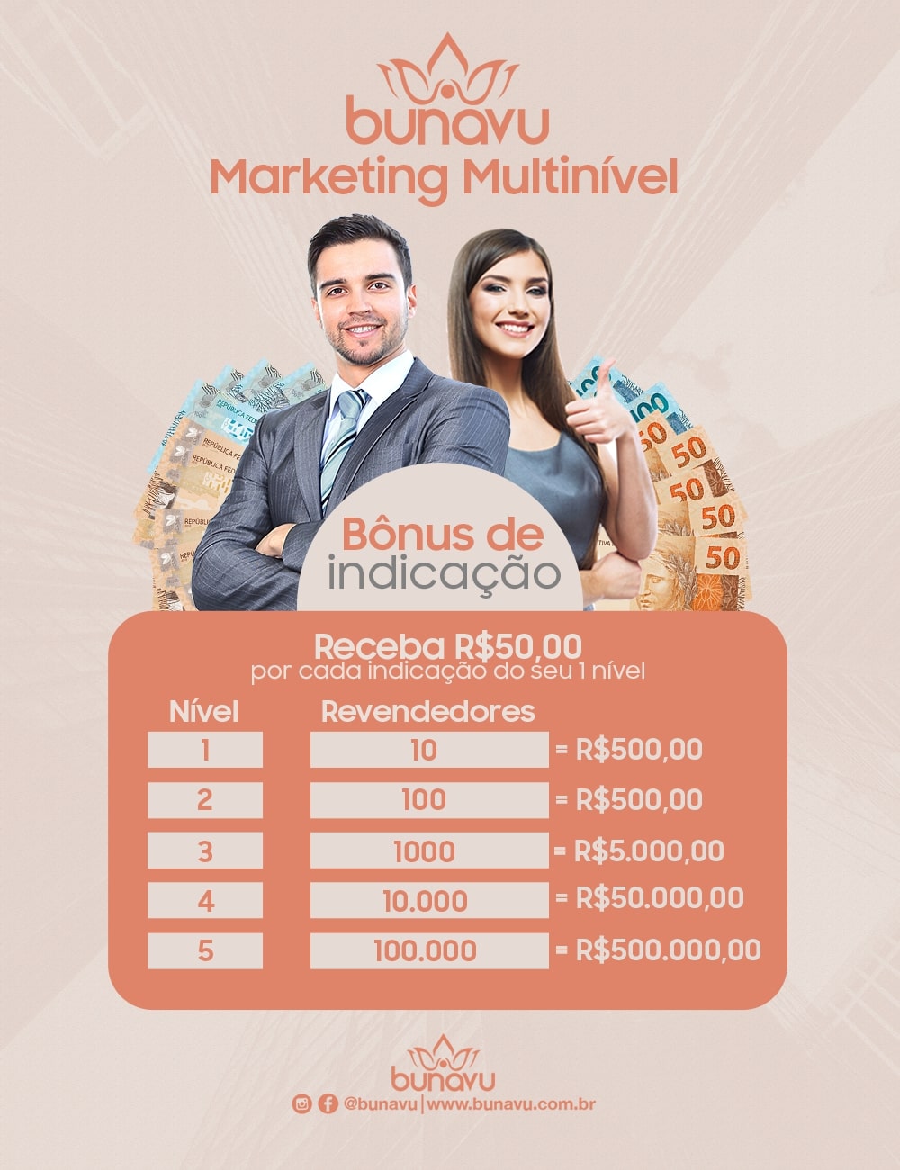 Para os empreendedores, a Bunavu também oferece um plano de Marketing Multinível de alcance global e ilimitado.